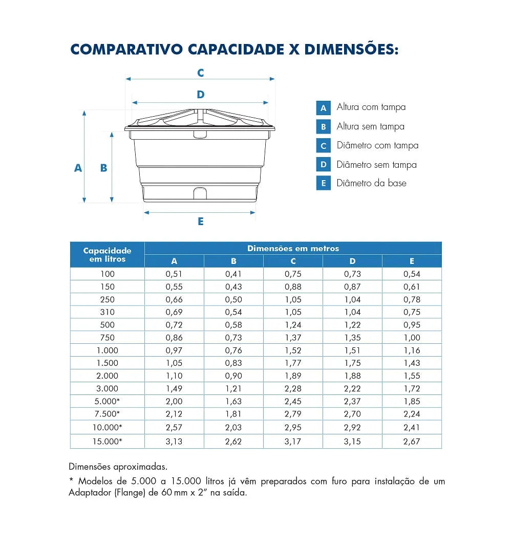 O sistema exclusivo de encaixe da tampa simples garante vedação eficiente e melhor conservação do conteúdo, evitando contaminações. Indicada para instalações residenciais, comerciais, escolares e outros ambientes que necessitam de armazenamento de água em temperatura ambiente.